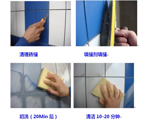 7、 待填缝剂于24小时完全固化后,再用水或专用清洗剂清除尚存的斑迹。